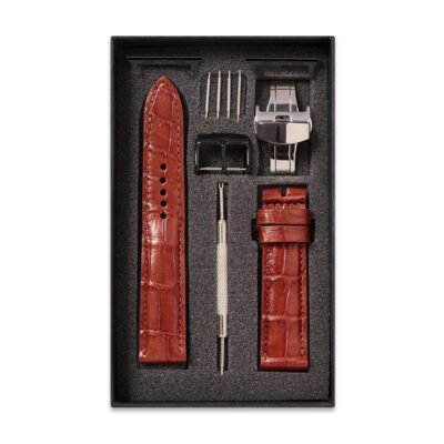 Chất liệu: dây da đồng hồ bằng da cá sấu thật 100% dây da chính hãng, không bị bong tróc, với các liên kết bằng thép không gỉ chất lượng cao để dễ dàng thay đổi kích thước.