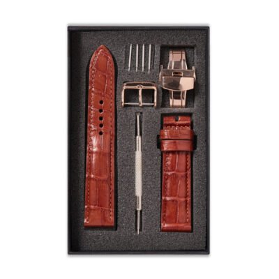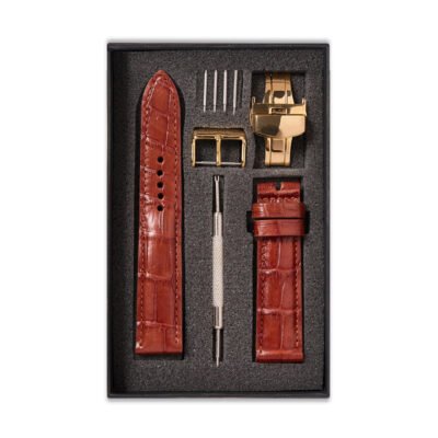 Chất liệu: dây da đồng hồ bằng da cá sấu thật 100% dây da chính hãng, không bị bong tróc, với các liên kết bằng thép không gỉ chất lượng cao để dễ dàng thay đổi kích thước.