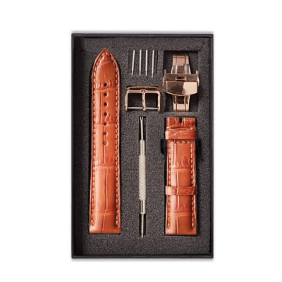Chất liệu: dây da đồng hồ bằng da cá sấu thật 100% dây da chính hãng, không bị bong tróc, với các liên kết bằng thép không gỉ chất lượng cao để dễ dàng thay đổi kích thước.